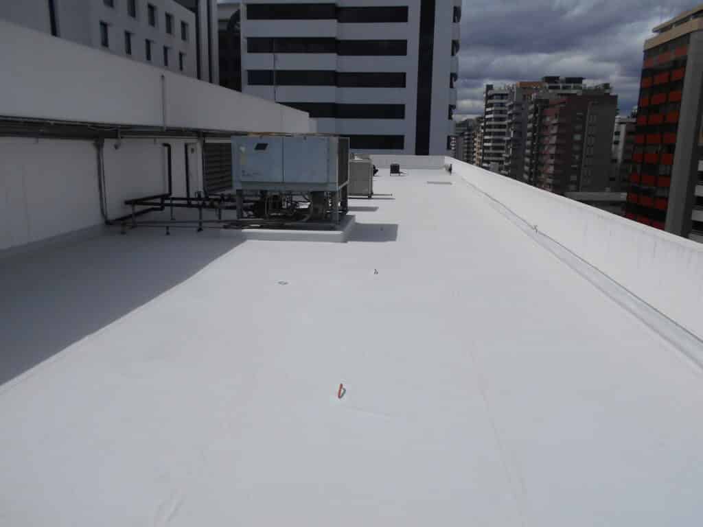 • Membrana PVC gris, resistente a rayos UV y a empozamientos de lluvia, espesor = +/- 1.2mm, refuerzo poliéster.