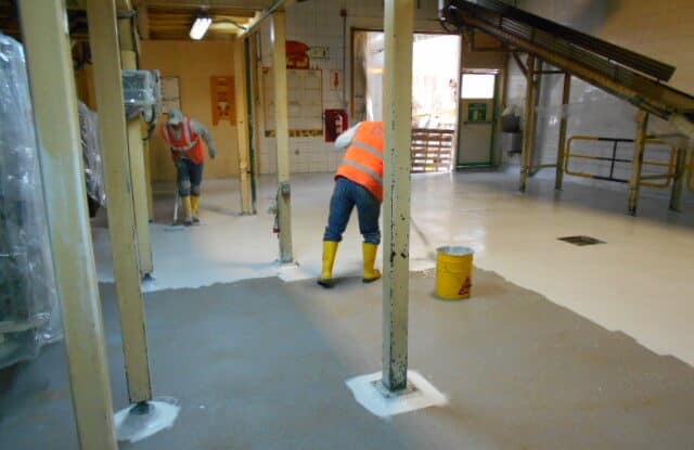 • Sello epóxico SF 264, color gris, alto espesor – norma sanitaria, acabado antideslizante (pisos húmedos).