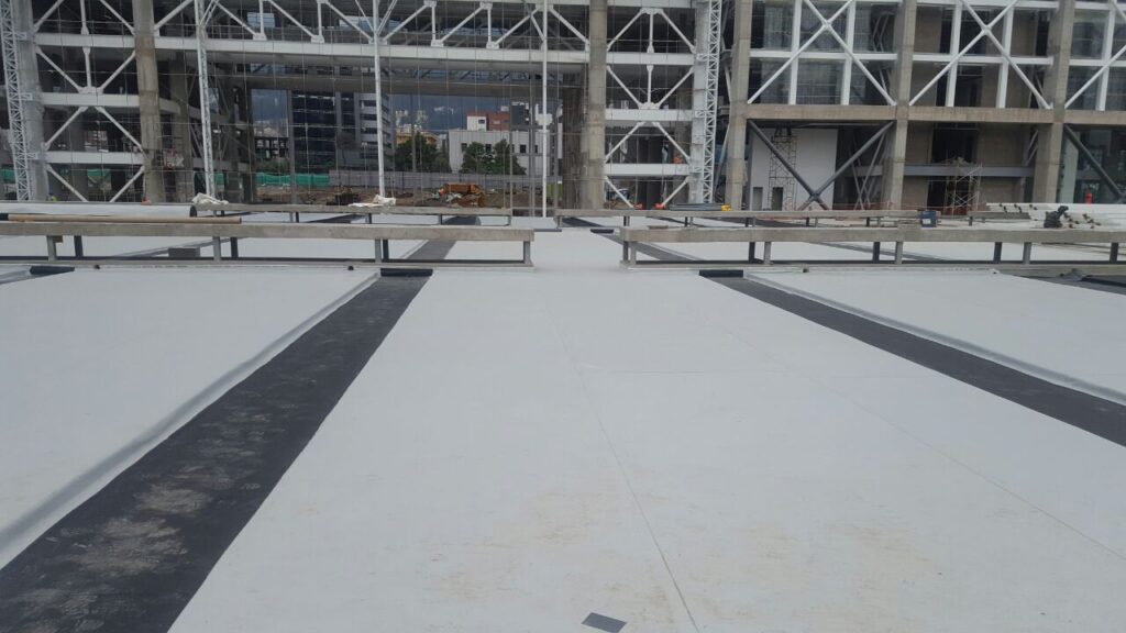 • Membrana PVC gris, 1.2mm, (refuerzo poliester) compatible con mortero de pega de acabados rígidos.
