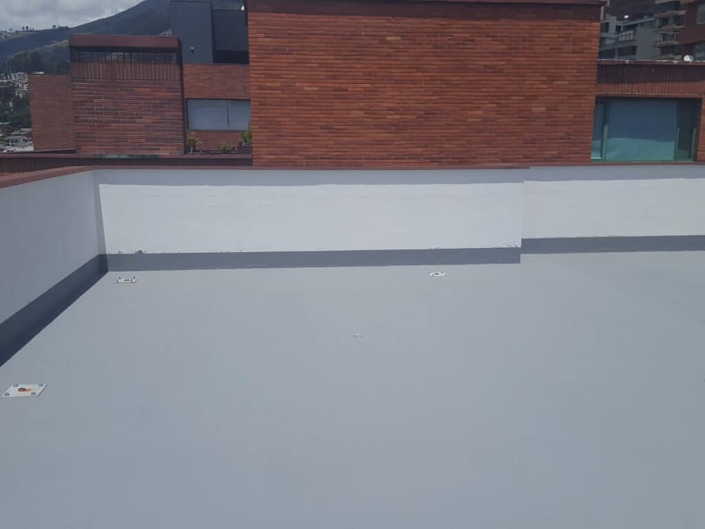 • Sello de juntas e impermeabilización poliuretano-acrílico color gris (3 capas), con malla de refuerzo de poliéster.