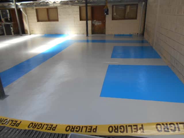 • Primer epóxico (1 capa), sello con pintura epóxica colores gris y azul (2 capas), resistente a tráfico vehicular intensivo y derrame de combustible.