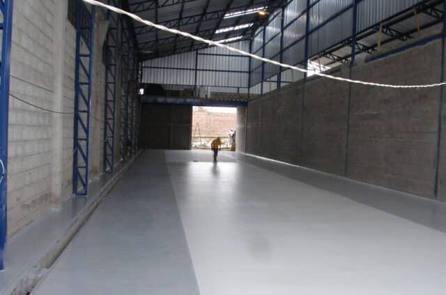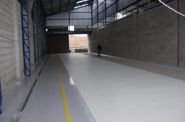 • Sistema epóxico resistente a tráfico mecánico intensivo (montacargas y coches), espesor: +/- 1.5mm.