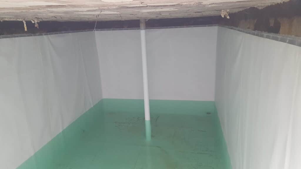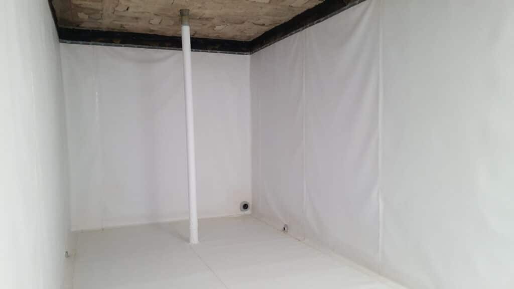 • Membrana atóxica de PVC *1.2mm, color blanco, en piso y paredes interiores. Nueva escalera de acceso instalada.